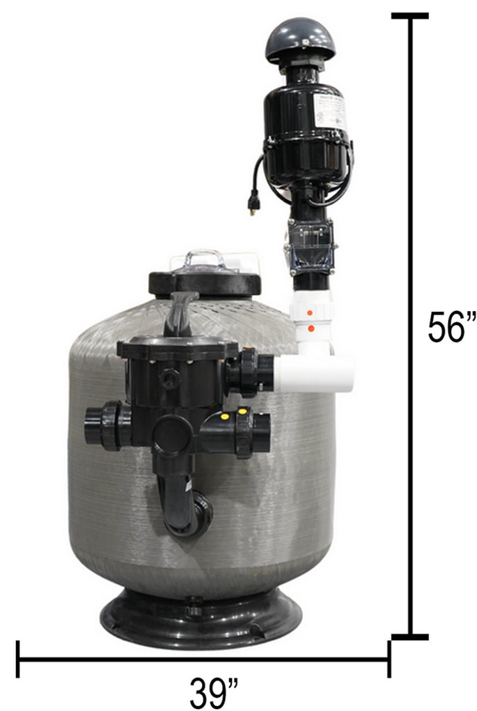 The filter contains Anjon's Bio Comb Fluidized Bio Media in a sturdy Pressure Filter housing with a multi-head and an included 2 HP Blower to ensure deep backwashing. The plumbing is also 2"